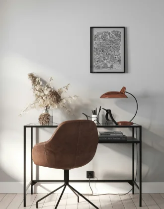 Judging by the final result of this pretty bathroom reno, you’d almost never be able to tell this bright room is actually a windowless space.